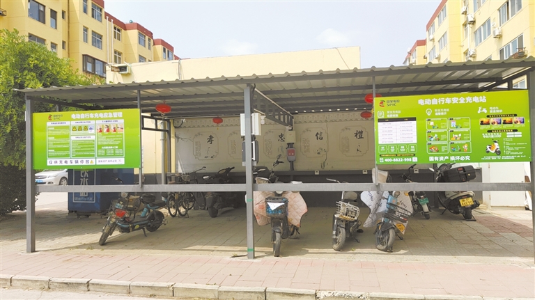 依據方便居民使用的就近原則,在小區內每兩棟樓距間設一組20個電動車充電口,并按標準配備了滅火器。如今,7組電動車棚已經投入使用,由物業統一管理,社區統一監督使用,讓每位居民在使用的過程中不光是享有者,更是監督者。