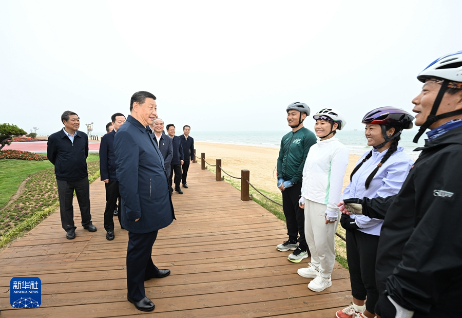 5月22日至24日,中共中央總書記、國家主席、中央軍委主席習近平在山東考察。這是22日下午,習近平在日照市陽光海岸綠道同市民親切交流。