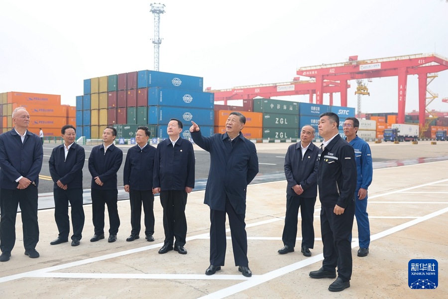 5月22日至24日,中共中央總書記、國家主席、中央軍委主席習近平在山東考察。這是22日下午,習近平在日照港親切慰問港口科技工作者、運營人員、航運人員。