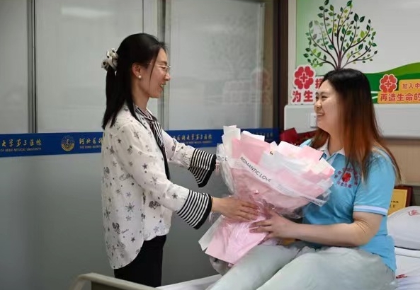 5月30日上午,河北醫(yī)科大學(xué)第三醫(yī)院的干細(xì)胞采集室里,高依林平躺在床上,不能移動(dòng)身體。采集室內(nèi)格外安靜,只聽(tīng)到機(jī)器“嗡嗡”運(yùn)轉(zhuǎn)的聲音。她面色平靜,為了保證血液正常流速,雙手始終抓握著壓力球。一松一握之間,紅色的壓力球仿佛有了“心跳”的節(jié)奏,好似生命的新生。歷經(jīng)5個(gè)小時(shí),采集完成,紅十字會(huì)工作人員為她送上鮮花。高依林成為中華骨髓庫(kù)第17655例、河北省第766例造血干細(xì)胞捐獻(xiàn)者。