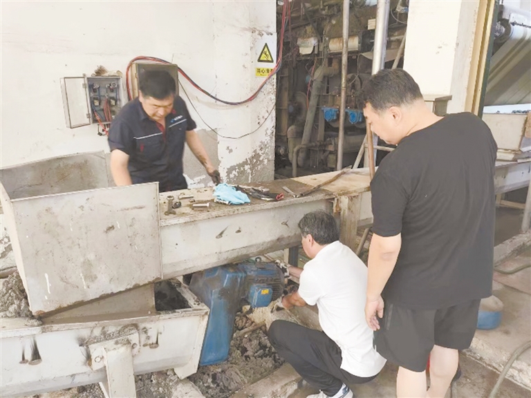 持續的高溫晴熱天氣,密閉機房猶如一個大蒸籠,為了讓輸送機盡快恢復正常運行,在酷熱難耐、氣味刺鼻的工作環境下,維修團隊相互配合,以最快速度完成了維修任務,確保了泥處理工段的正常運行。