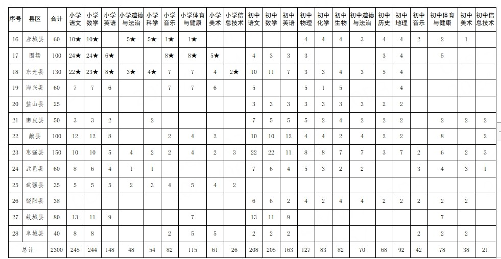 河北省2024年中央“特崗計劃”各縣招聘崗位表