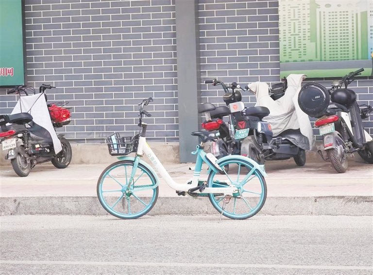 6月21日,百花路上建華大街至第一醫院天橋路段,短短的一段路,有兩輛共享單車隨意停在路邊,既不美觀也具有安全隱患。希望大家在享受共享單車便利的同時,能夠自覺把車停到就近的“車位”,而不是隨意“丟”在路上。 張倩 攝