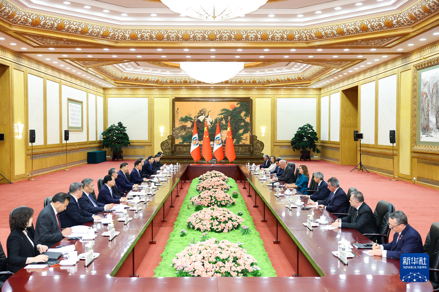 6月28日下午,國家主席習近平在北京人民大會堂同來華進行國事訪問的秘魯總統博魯阿爾特舉行會談。