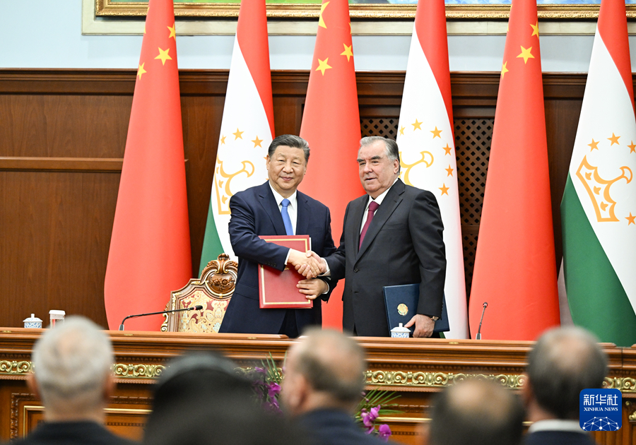 當地時間7月5日下午,國家主席習近平同塔吉克斯坦總統拉赫蒙在杜尚別總統府舉行會談。會談后,兩國元首共同簽署《中華人民共和國和塔吉克斯坦共和國關于發展新時代全面戰略合作伙伴關系的聯合聲明》。
