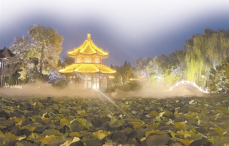 8月24日晚7時許,夜幕降臨,古蓮花池被五彩燈光點(diǎn)亮,一場別開生面的夜游活動拉開帷幕。步入景區(qū),仿佛進(jìn)入了一個夢幻的世界,璀璨的燈光如繁星灑落,在古老的建筑和獨(dú)特的景觀之間勾勒出一幅幅絕美畫卷。