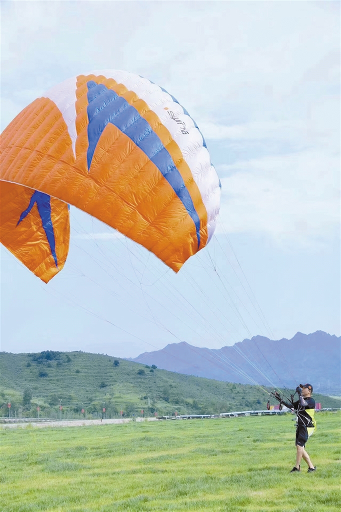 游客正在七山度假區(qū)進(jìn)行動力滑翔體驗。