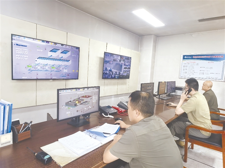 在水廠的中控室,一塊大屏幕映入眼簾,廠區全貌、管網信息等一目了然,濁度、壓力、進出水流量等關鍵參數“全局在握”。根據這些數據,工作人員通過操作平臺,調整絮凝藥劑投加、過濾和消毒方式等工藝,實現對生產過程的全程可視化監控管理,保證出廠水水質合格。