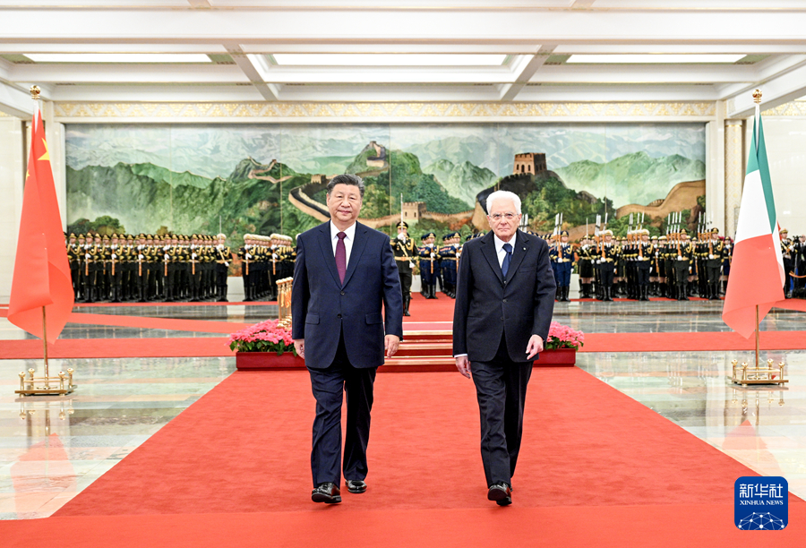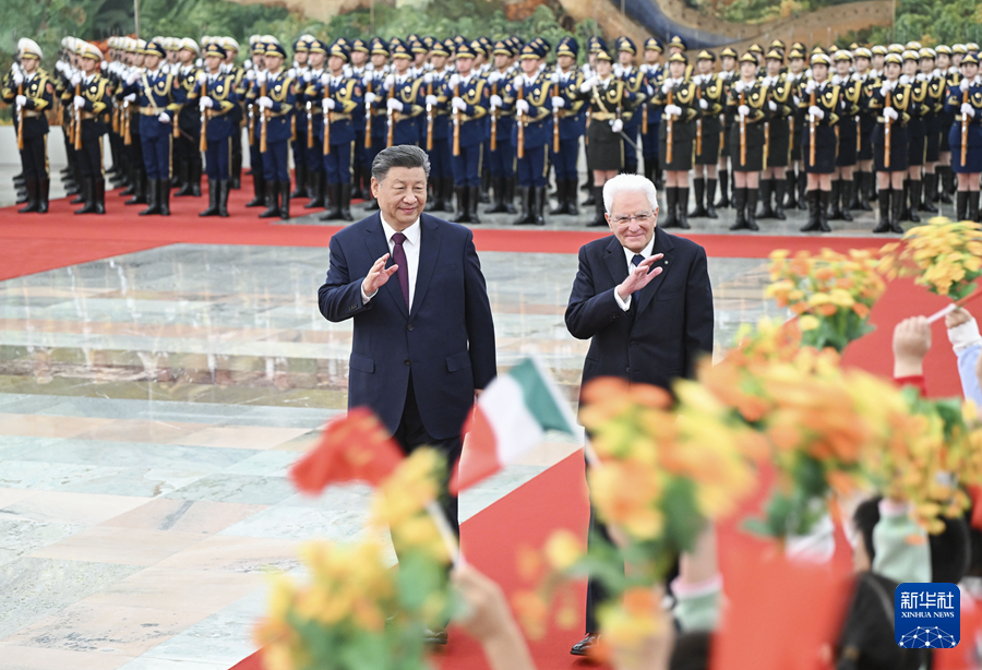 11月8日下午,國(guó)家主席習(xí)近平在北京人民大會(huì)堂同來(lái)華進(jìn)行國(guó)事訪問(wèn)的意大利總統(tǒng)馬塔雷拉舉行會(huì)談。這是習(xí)近平在人民大會(huì)堂北大廳為馬塔雷拉舉行歡迎儀式。