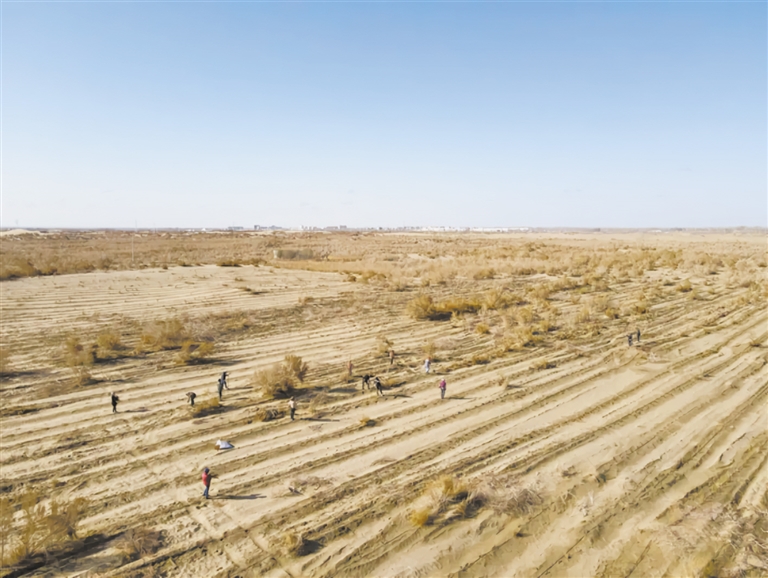 群眾在離且末縣不遠的沙地里種植梭梭。(資料片)