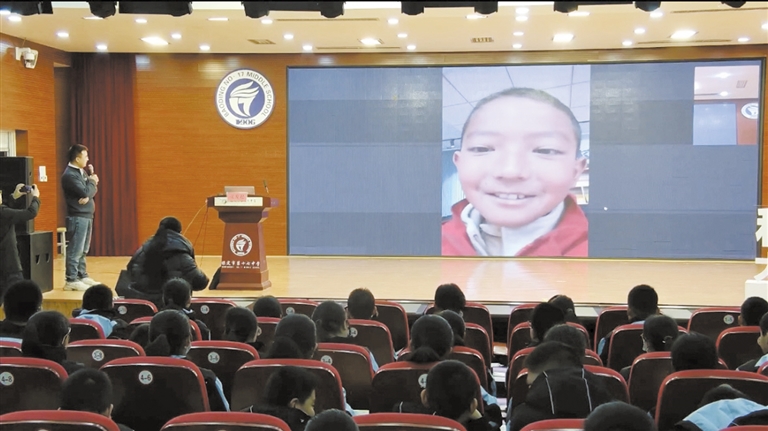 在保定市第十七中學(保定外國語學校校區)報告廳,除現場聽報告的學生外,此次講座還設置了一個特殊環節——與西藏拉薩阿里河北完全中學初一2班44名學生連線互動,共上一堂科學課。云端好課共享,一塊屏幕,拉近了阿里和保定兩地學生的距離,在兩地孩子們心里播下科學的種子,點燃科學的夢想。