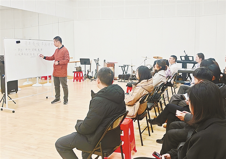 與此同時,夜校與保定學院等高校合作,推出“市群眾藝術(shù)館×保定學院聯(lián)名課”,有鋼琴、軟筆書法、合唱,希望通過高校師生授課全面提升課程專業(yè)化水平。
