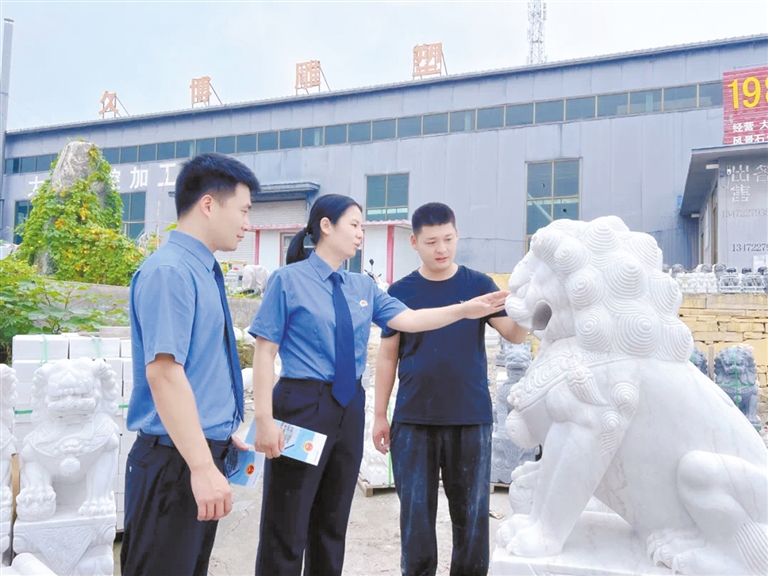 “石”刻守護(hù),防患未然。“曲陽(yáng)石雕”等商標(biāo)注冊(cè)后,商標(biāo)冒用、作品仿制問(wèn)題出現(xiàn)。曲陽(yáng)檢察院“藍(lán)焰”法治宣講團(tuán)針對(duì)雕刻企業(yè)關(guān)心的法律問(wèn)題開(kāi)展宣講,發(fā)放宣傳冊(cè)8000余份,走訪企業(yè)100余次500余家。在重點(diǎn)企業(yè)建立知識(shí)產(chǎn)權(quán)保護(hù)聯(lián)系點(diǎn),邀請(qǐng)大學(xué)教授授課;參與“萬(wàn)人助萬(wàn)企”行動(dòng),為企業(yè)提供訂單式服務(wù);創(chuàng)建“藍(lán)焰”云上訪談區(qū),連麥雕刻電商博主,打造“線下+線上”護(hù)航模式,以檢察匠心守護(hù)雕刻企業(yè)健康發(fā)展。