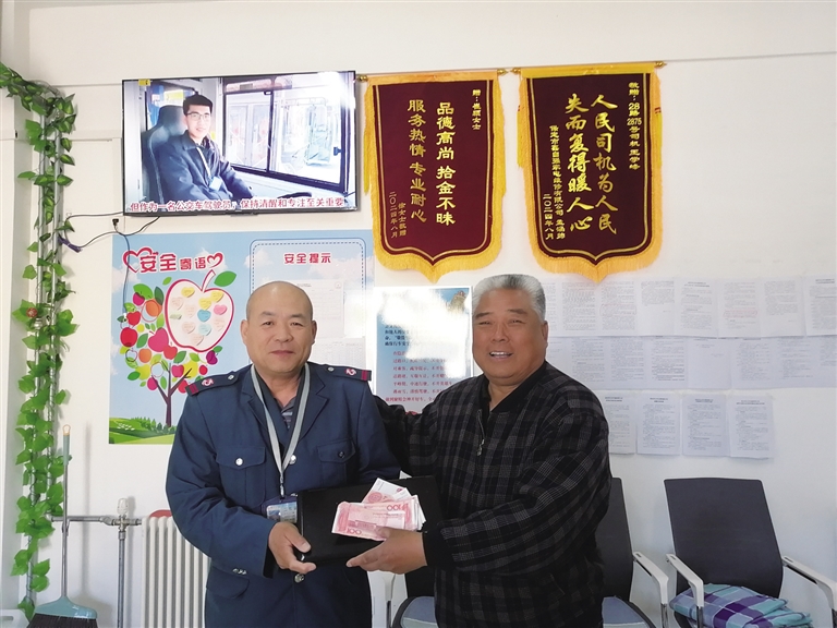 在路邊執(zhí)勤交警的幫助下,楊老先生撥打28路公交場站電話,電話接通后,另一邊傳來親切的應(yīng)答聲:“您別著急,包里都有什么……稍等一下,正好我們司機撿到了,您到28路場站來取吧。”原來,楊老先生打電話尋找失物時,正趕上剛剛回場的28路駕駛員孫衛(wèi)星拎著撿到的背包走進站務(wù)室,核對無誤后,老人一顆懸著的心才終于落了地。