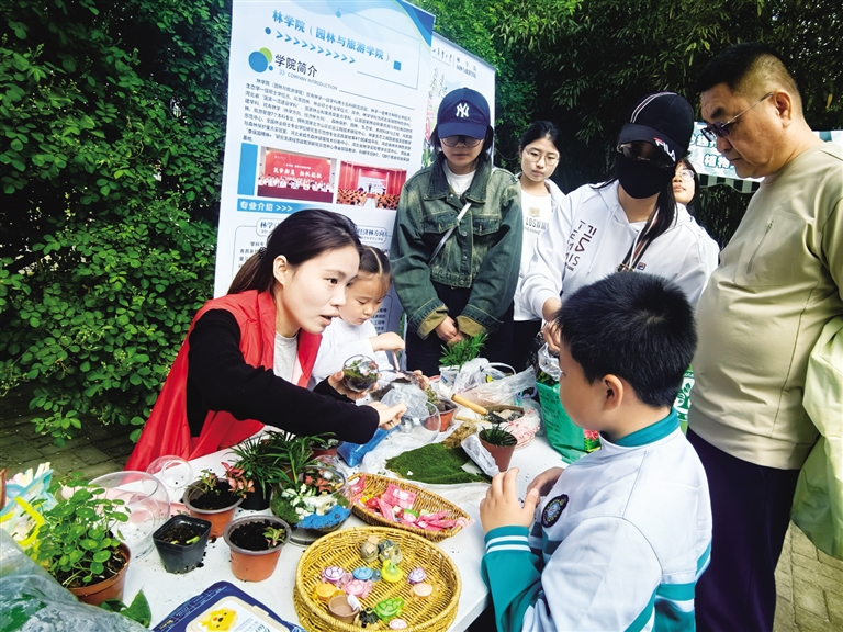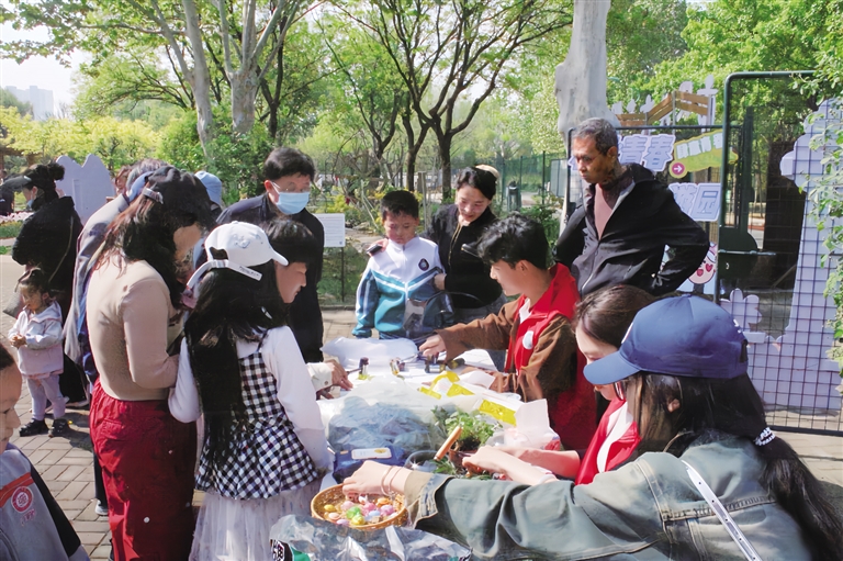 家庭美育,美好時光。公園還開辟了園藝區,提供多肉拼盤、蔬菜盆栽區,現場交流家庭園藝種植技巧,推廣陽臺菜園科普和技術技巧,吸引了眾多市民圍觀。