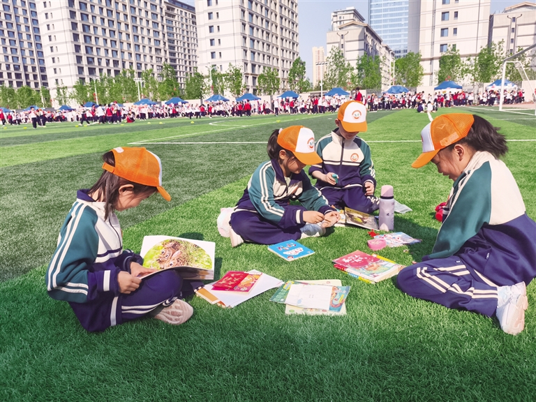 除了火熱的好書交易,讀書節活動作品展,最美朗讀者、好書推薦官挑戰贏書簽活動同步進行,吸引同學們踴躍參與。不少孩子換到心儀的圖書,迫不及待坐在圖書館、小廣場、草坪上閱讀。先鋒晨光學校三年級學生陳姝言說:“多讀書讀好書,我現在寫作文進步很大。”五年級學生李鎮馨拿著《昆蟲記》說:“這本書有很多前任讀者的筆記,我感覺跟他們隔空交流,閱讀快樂翻倍,好書分享共讀更開心!”