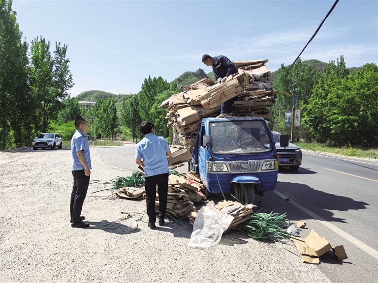 保定晚報訊(記者齊域寬 通訊員王愛華)5月4日上午10時30分許,易縣市場監管局易水湖所執法人員在金龜碼頭至太行水鎮巡查途中,行至金龜碼頭與龍西公路交叉口時,發現一輛滿載貨物的三輪車所載物品掉落一地。時值車流高峰,路面通行受阻,車主焦急無措。執法人員立即停車處置,一邊疏導過往車輛確保安全,一邊迅速幫助車主將散落貨物重新裝載固定。經過協力處置,道路很快恢復暢通,車主對執勤人員的及時援手非常感謝。