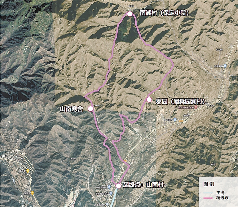 途中會經過三個特色村莊:山南村,是著名紅色歌曲《沒有共產黨就沒有新中國》的唱響地,激昂歌聲穿越時空,激勵著中華兒女為民族復興奮斗;南湖村,作為“保定小院”示范村,如璀璨明珠鑲嵌大地,展現鄉村新貌;桑園澗村,植被覆蓋率極高,風光如畫,是人與自然和諧共生的典范。