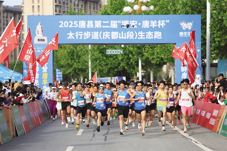 活動開幕式上,原創歌舞《一路花開》《動感舞曲》精彩上演,展現唐縣文化魅力。隨著發令槍響,千余名跑者如離弦之箭穿梭于綠意盎然的保定太行步道,盡情享受運動與自然交融的獨特魅力。參賽者王國偉說:“在如畫賽道奔跑,還能品嘗家鄉味道,希望這樣的活動多舉辦。”