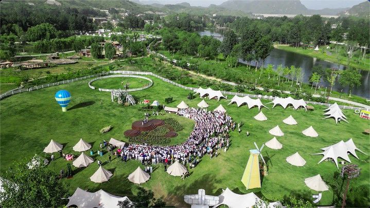 游客們在易縣的戀鄉·太行水鎮生態農場上參加活動。(受訪單位供圖)