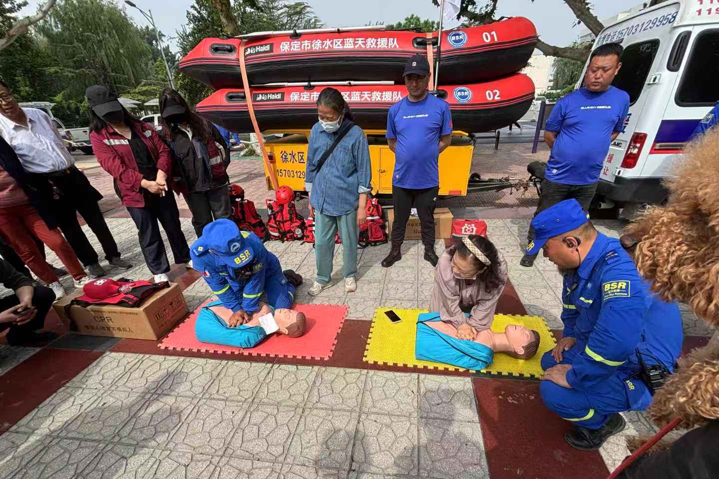 防災(zāi)減災(zāi)集中宣傳活動(dòng)現(xiàn)場(chǎng),徐水區(qū)藍(lán)天救援隊(duì)隊(duì)員開(kāi)展心肺復(fù)蘇急救現(xiàn)場(chǎng)教學(xué)。 閆森 攝