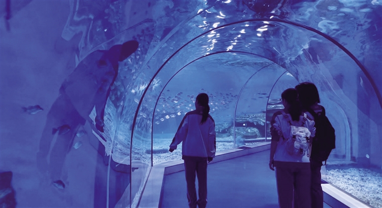 科技海洋館內300余種、12000多尾水生生物打造水母宮和鯊魚隧道的夢幻光影,讓孩子感知海洋奧秘?!斑呁孢厡W,體驗感滿分!”家長李然很是認同科普游園。