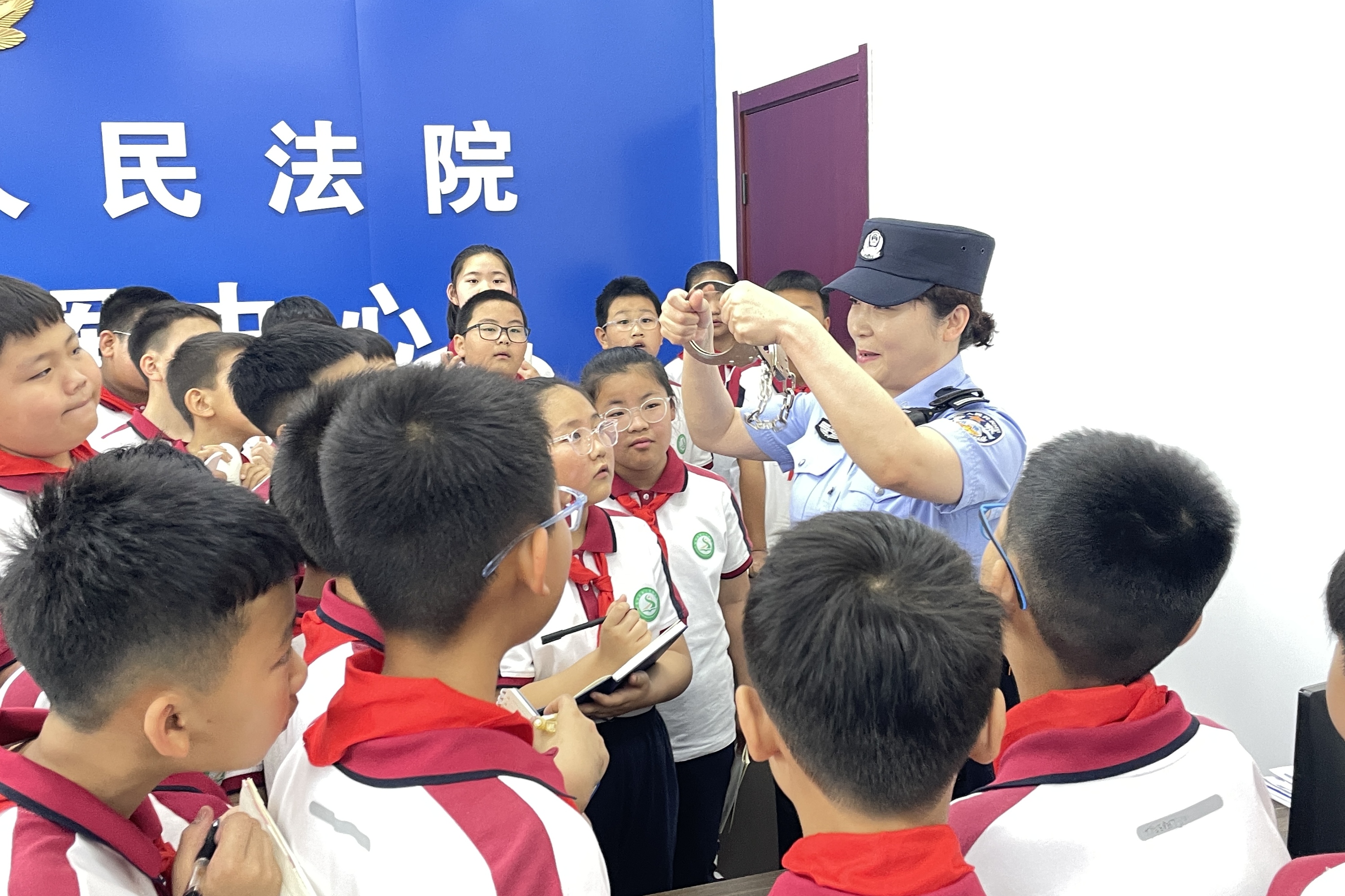 模擬法庭結束后,同學們參觀法院羈押室、警用器械及執行指揮中心、院史館等,從歷史沿革和重大事件中感受法治的傳承和力量。通過法院走廊兩側精心設計的法治文化展板,同學們了解古代典型案例,在移步換景間獲取法律常識。“通過這次活動,我知道了法律是維護社會公平正義的重要武器,以后我一定要做一個遵紀守法的好公民。”“這種沉浸式法治課堂,讓我學到了很多法律小知識,也激發了對法律的興趣。今后,我將學好法、用好法,不斷提升自己的法律素養?!睂W生們紛紛表示。