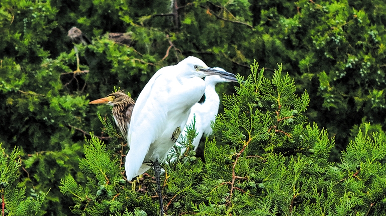保定晚報訊(記者葛淑霞 通訊員陳苗苗)近日,世界文化遺產清西陵的松柏林間,成群結隊的白鷺、夜鷺、池鷺或林間翩然起舞,或枝頭優雅靜立,或覓食嬉戲,與古松、藍天繪成一幅幅美麗和諧的自然生態畫卷。