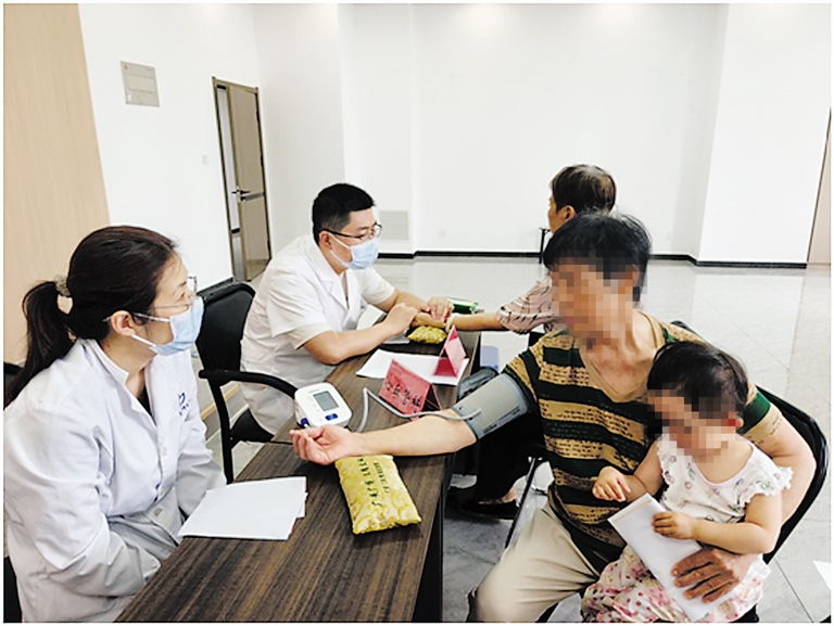 活動現場,醫務人員為居民測量血壓,仔細詢問身體情況,針對常見老年健康問題,提供個性化調理建議。醫務人員還為居民提供了豐富的中醫體驗項目,包括免費貼三伏貼、耳穴埋豆、測量血壓和把脈問診等,針對患者體質與癥狀進行中醫理療。