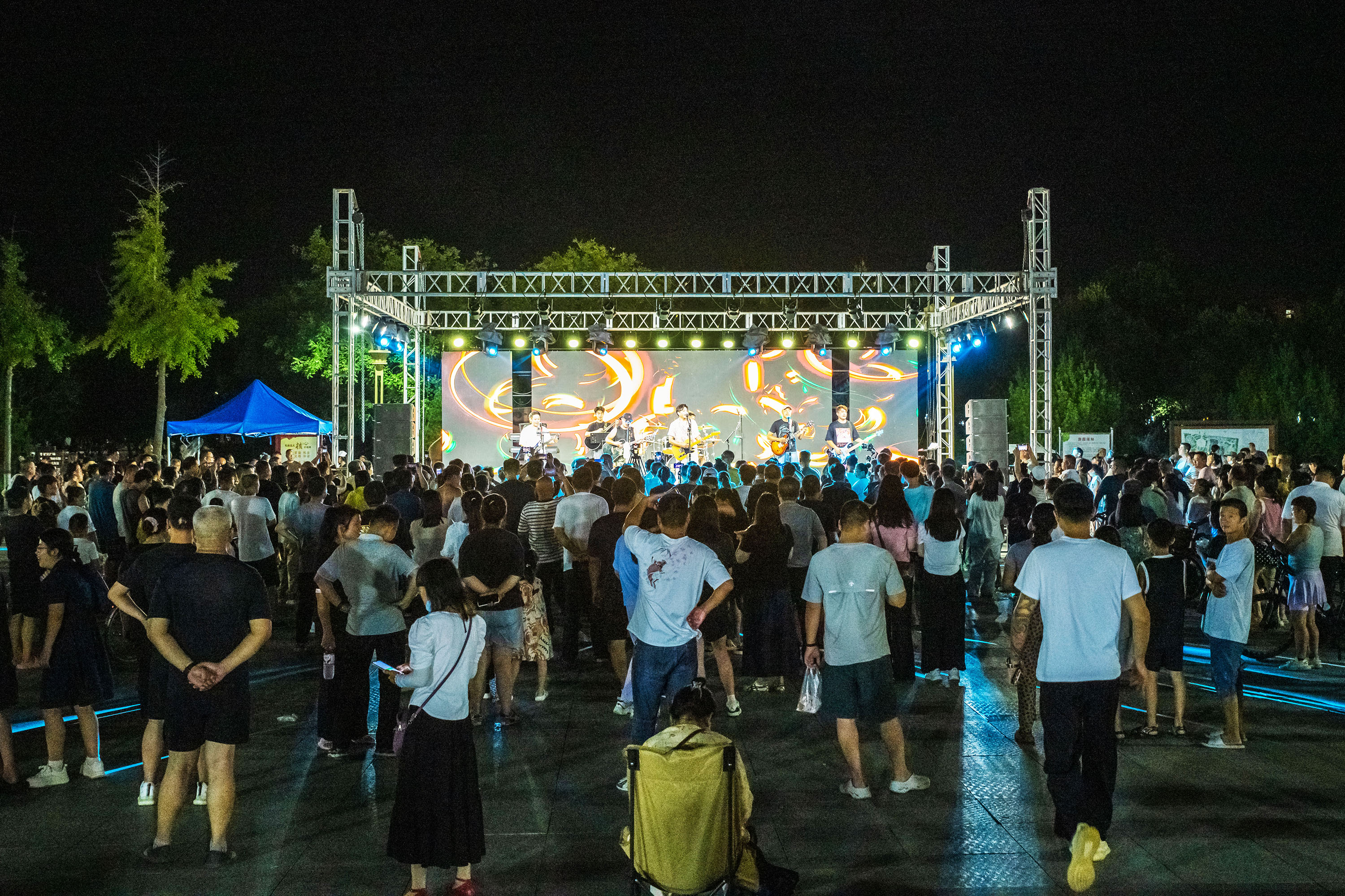 此次活動由高陽縣委宣傳部、縣文化廣電和旅游局、縣融媒體中心、縣文學藝術界聯合會聯合舉辦,旨在豐富縣域群眾文化生活,提升區域文化氛圍,為本土及優秀音樂人才提供展示平臺,推動音樂文化交流,增強地域凝聚力與經濟活力。現場人頭攢動,該縣第二樂章樂隊傾情演繹《一無所有》《光輝歲月》《我們的時光》等多首經典老歌,狂野的旋律,激情的演唱,燃爆全場,仿佛能穿透靈魂,讓現場觀眾熱血沸騰,跟隨節奏搖擺起來。“聽到這些歌曲,不僅能緩解工作生活中的壓力,還能找回年輕時的記憶,希望以后多舉辦這樣的活動,讓我們的身心在音樂中得到放松與滋養。”80后觀眾郭艷芬說。