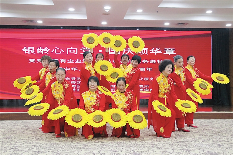 9月19日,競秀區工信局、競秀區國有企業退休人員社會化服務中心攜手競秀區戲劇家協會、先鋒街道新時代文明實踐所、百花新村社區新時代文明實踐站共同開展“慶雙節 展風采”主題文藝演出活動。《聲聲祝福你》《和諧中國》《故鄉的月光》《大寫的中國》等精彩文藝節目表達對祖國和家鄉的美好祝福,充分展現國企退休職工老有所樂、老有所為的良好精神風貌。 姚蕾 攝