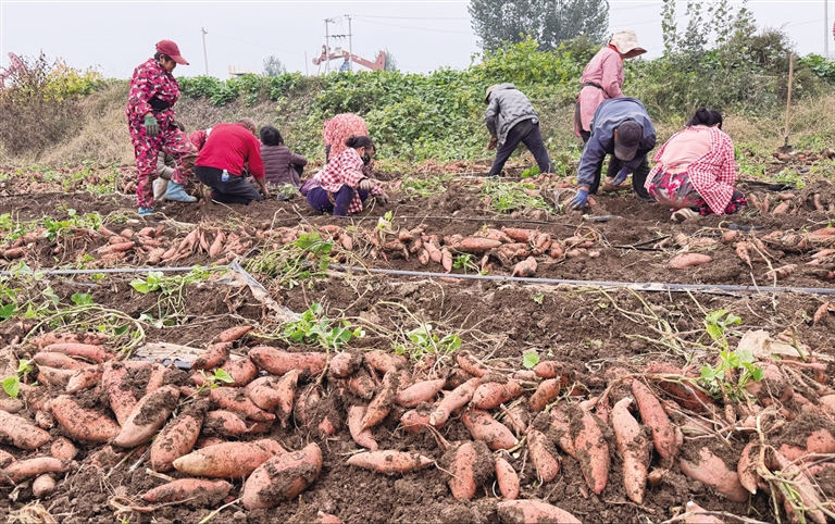 “在家門口干活,每天能掙150元到200元,既能照顧家里,又能有穩定收入,比出去打工踏實多了。”太平村村民李海濤一邊麻利地裝箱,一邊笑著說,“看著一筐筐的紅薯運出去,能賣個好價錢,我們干活更有勁頭了。現在村里不少人都在基地務工,大家靠著種紅薯日子越過越紅火。”